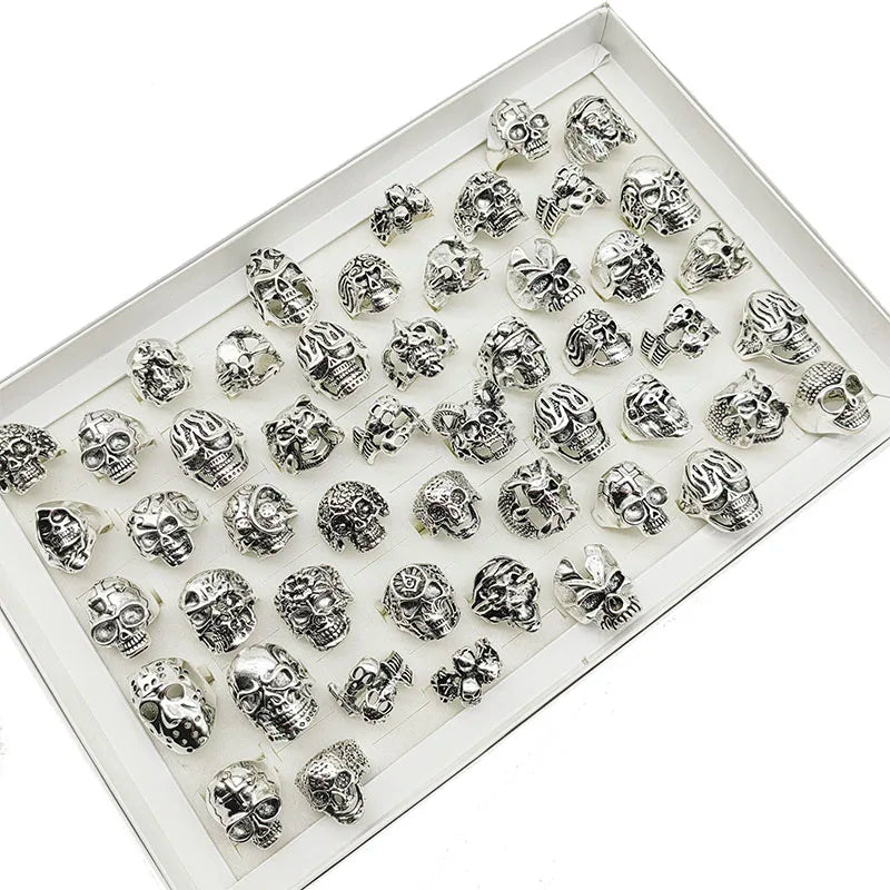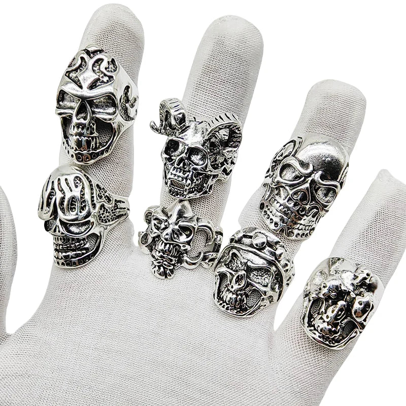 10pcs Vintage Punk Skull Rings Set – Mixed Style Alloy Jewelry for Men & Women