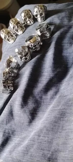 Get ready to make a bold impression with this 10-piece set of Vintage Punk Skull Rings — a mix of edgy styles perfect for parties, bars, or everyday streetwear.