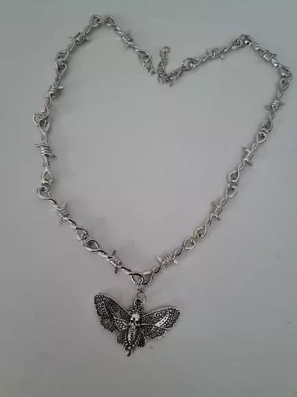 Unleash dark vibes with this Goth Moth Skull Barbed Wire Cross Pendant Choker — a striking fusion of punk, hip hop, and Y2K vampire aesthetics featuring intricate little thorn details for an unforgettable statement.
