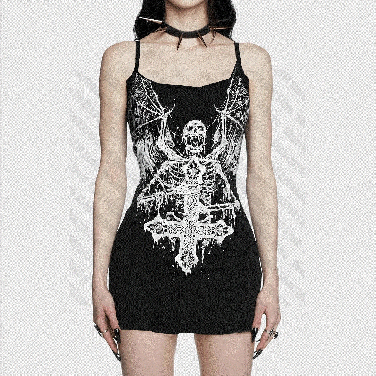 Women’s Y2K Punk Gothic Suspender Dress – Harajuku Hip Hop Streetwear for Summer